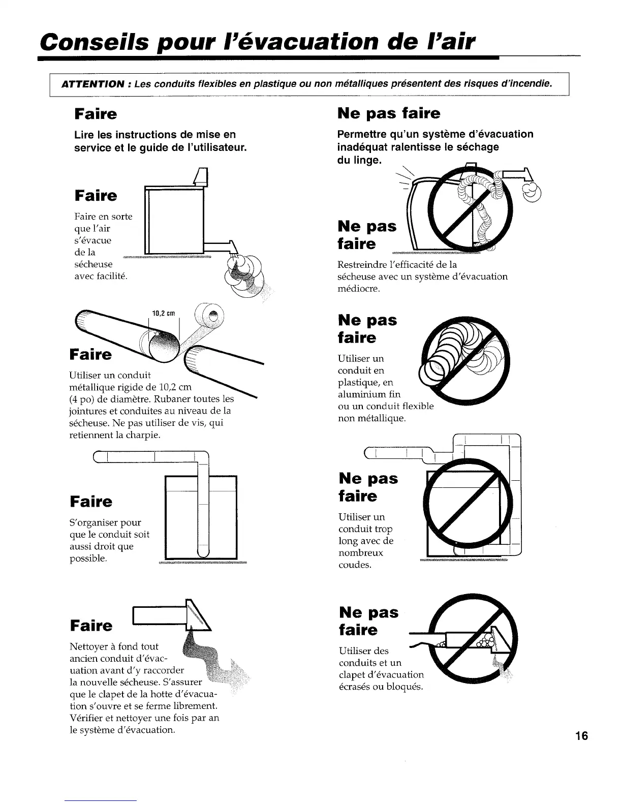 ATTENTION : Les conduits flexibles en plastique ou non m_talfiques presentent des risques d'incendie.