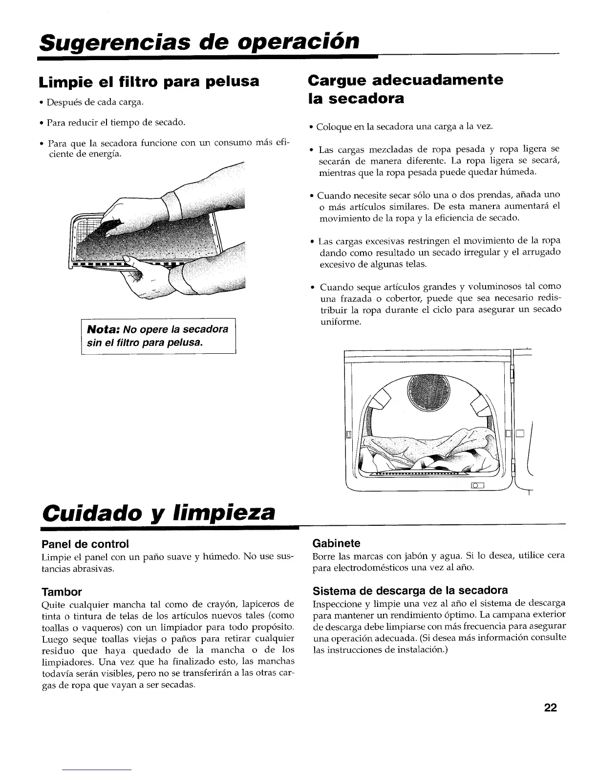 Nota: No opere la secadora
