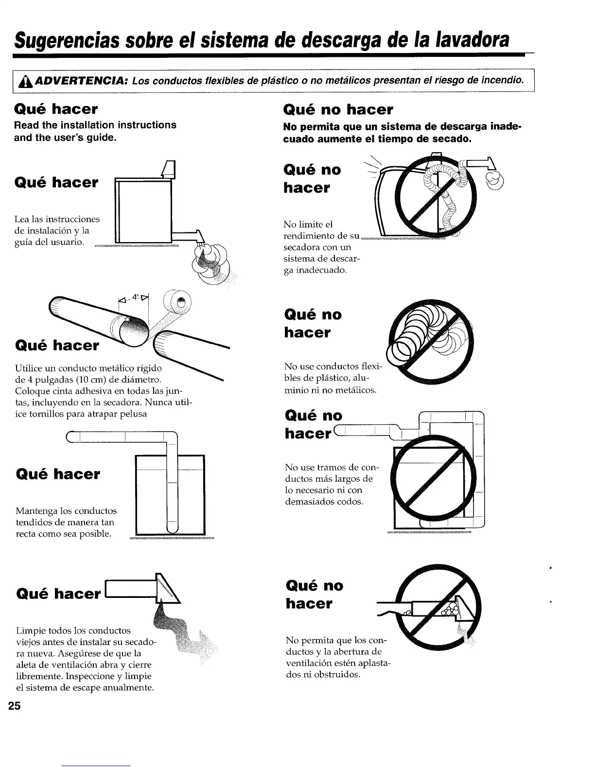 ADVERTENCIA: Los conductos flexibles de pl_stico o no met_licos presentan el riesgo de incendio.