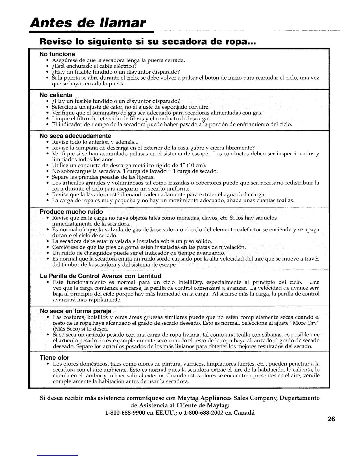 Si desea recibir m_s asistencia comuniquese con Maytag Appliances Sales Company, Departamento