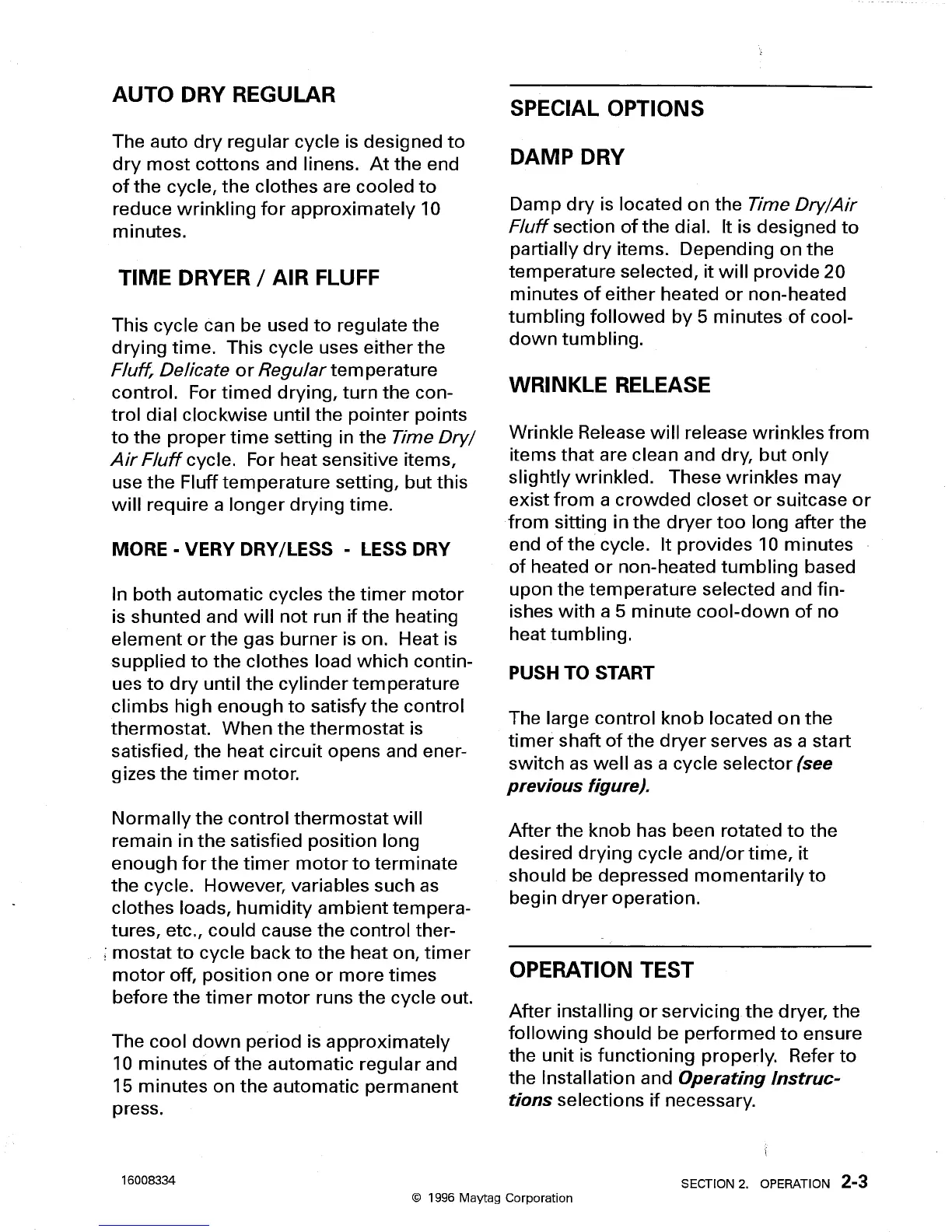 Maytag Performa PYG3200 - Auto Dry Regular; Time Dryer;Air Fluff; Damp Dry; Wrinkle Release