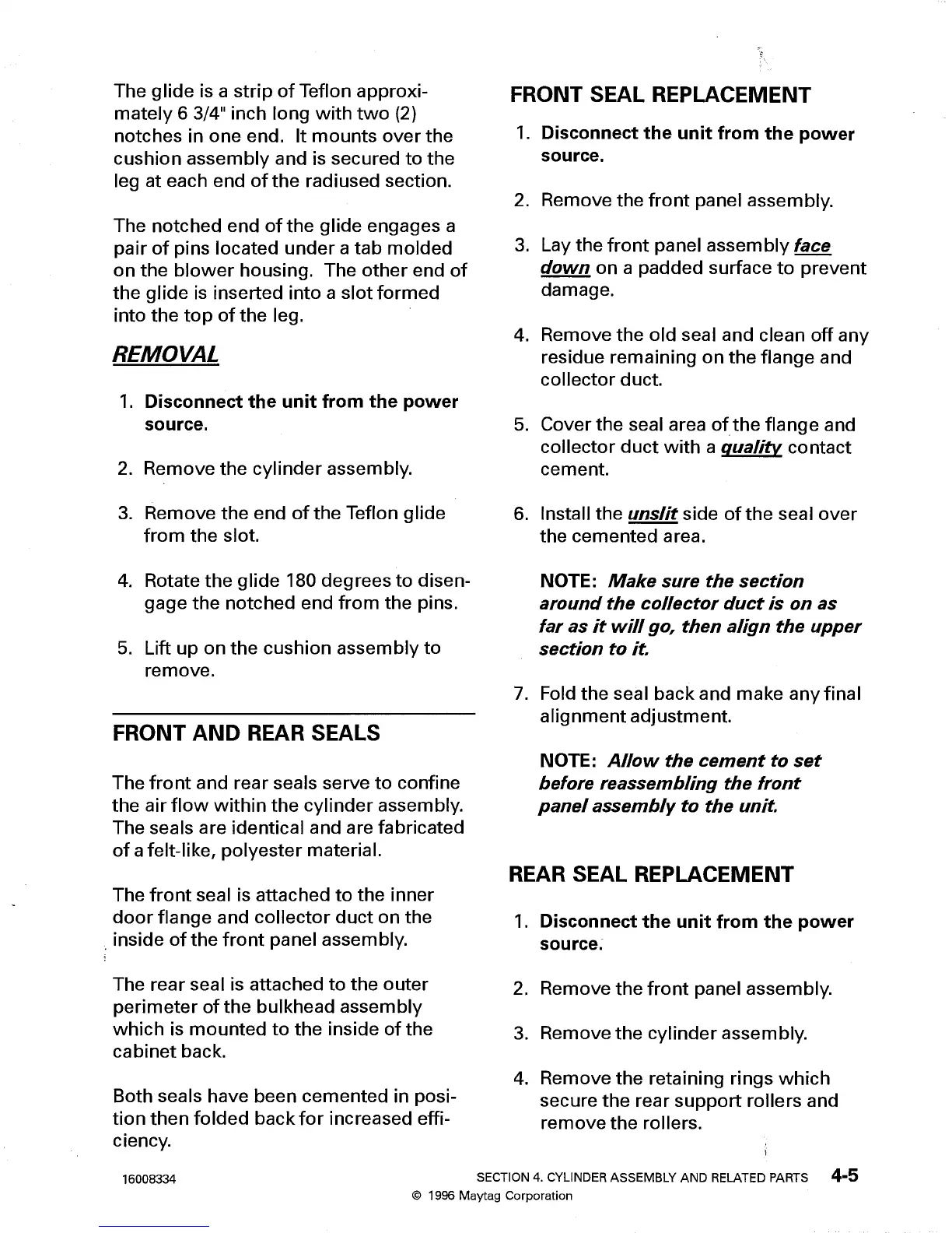 Maytag Performa PYG3200 - Front and Rear Seals; Front Seal Replacement; Rear Seal Replacement