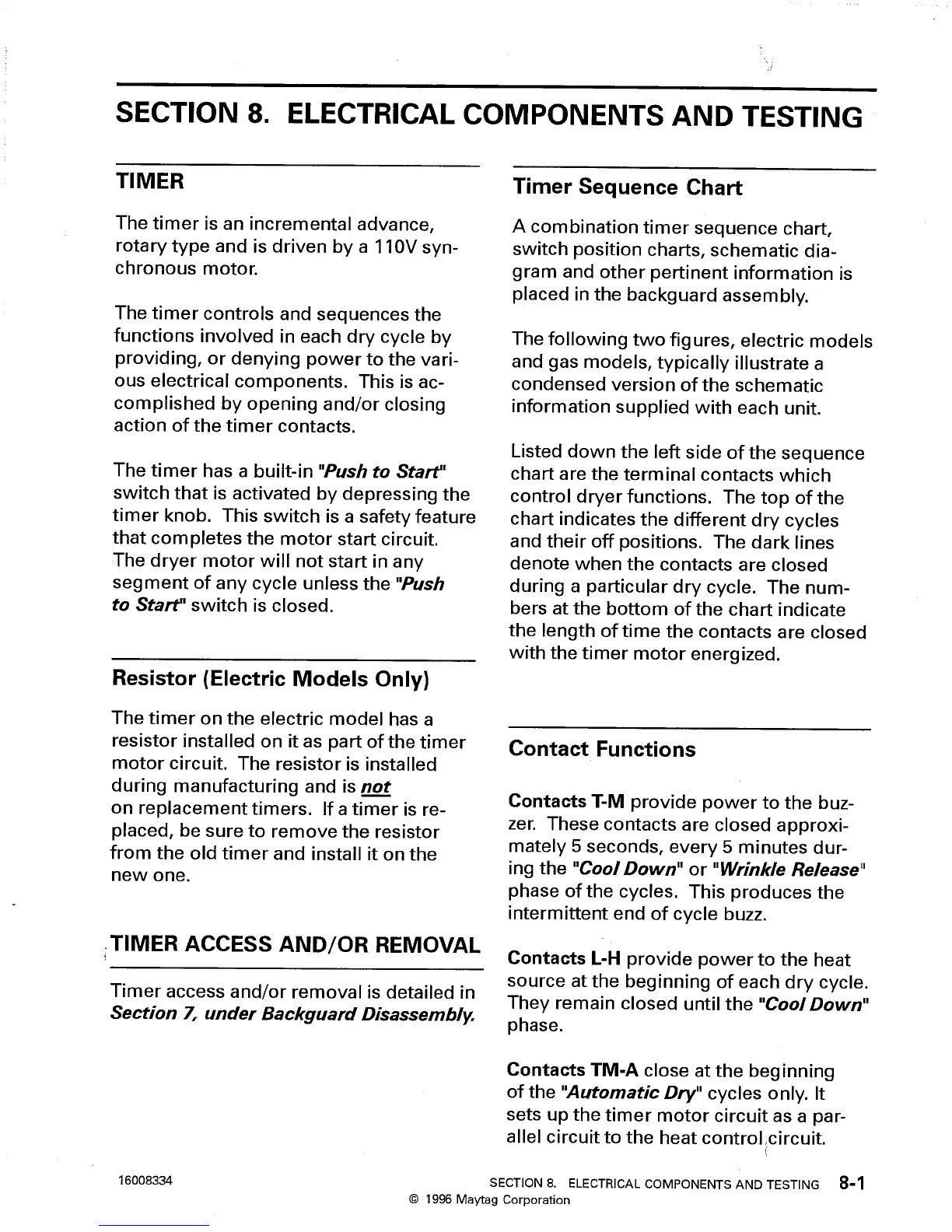 Maytag Performa PYG3200 - Section 8. Electrical Components and Testing; Timer and Control Switches