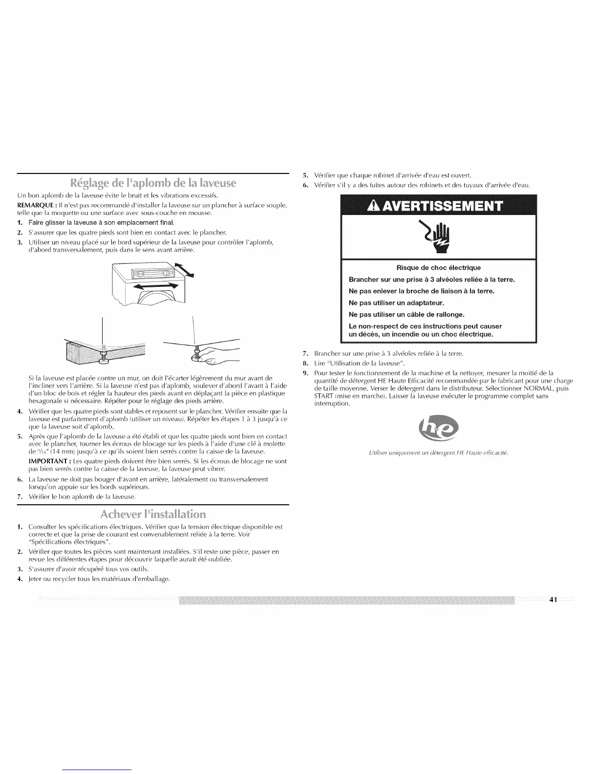 que la laveuse soit d'aplomb.