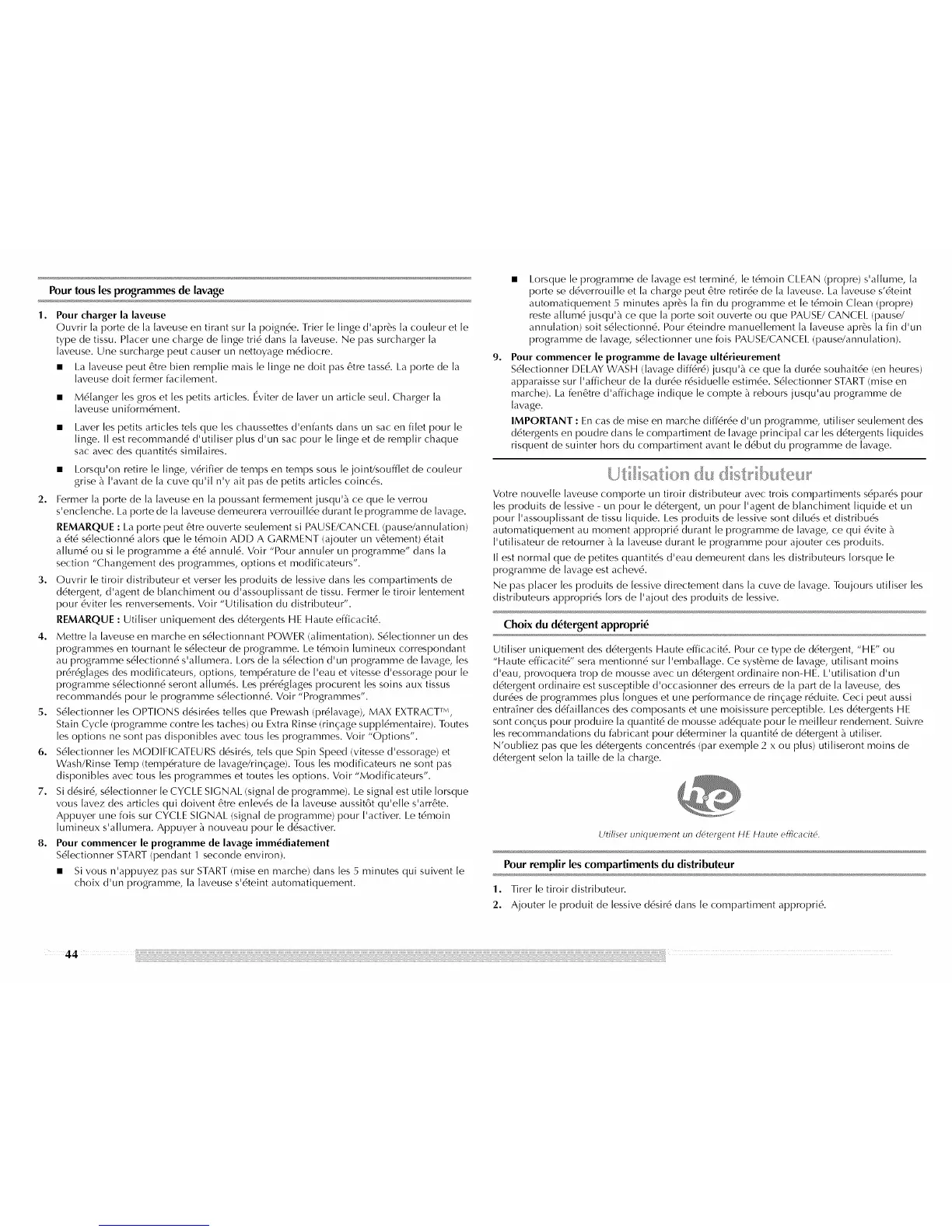 REMARQUE : Utiliser uniquement des d6tergents HE Haute efficacit6.