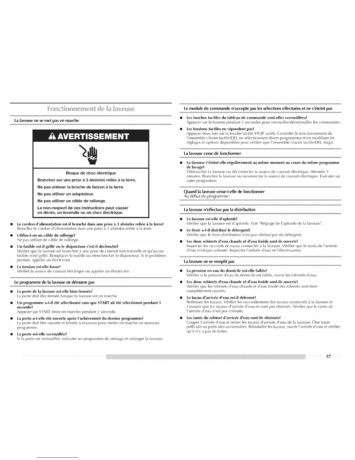 V6rifier que la laveuse est branch6e b_une prise de courant fonctionnelle et qu'aucun