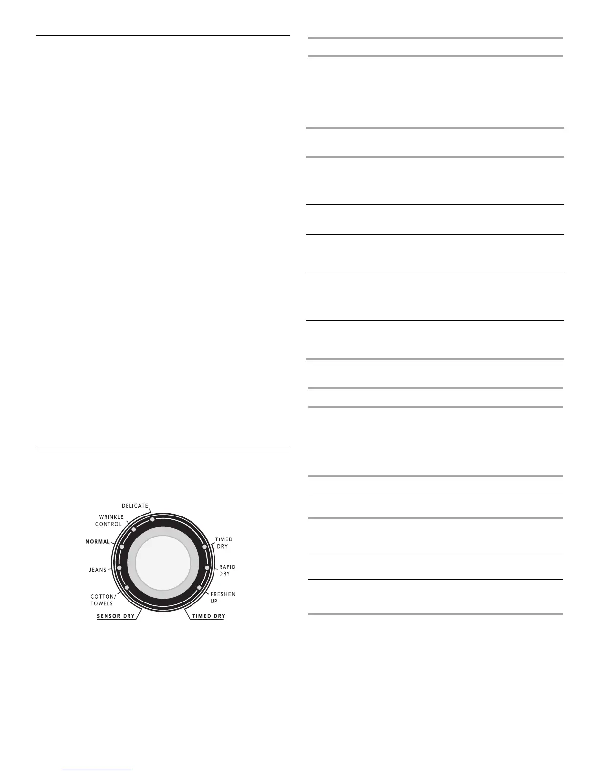 ■ Refer to the Sensor Dry or Timed Dry Cycles Preset Settings chart