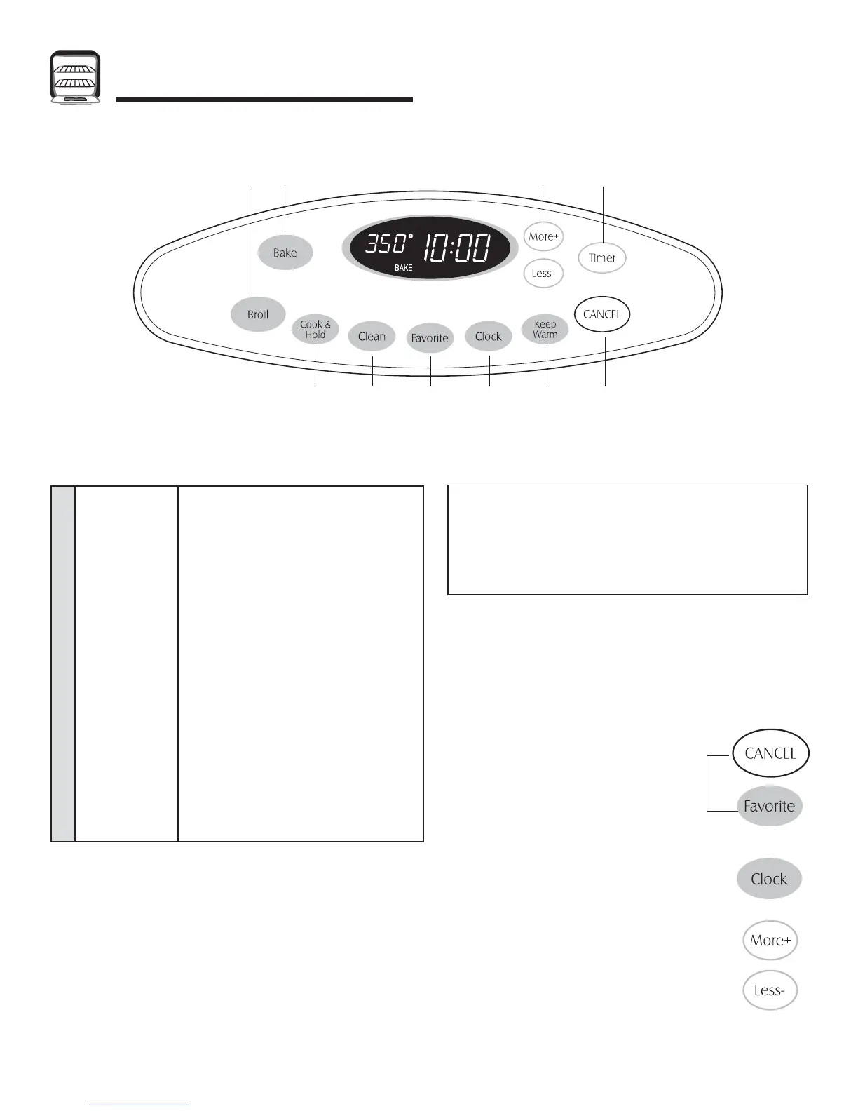 fonctions du four. Le tableau de commande représenté comprend caractéristiques spécifiques au modèle. (Le style peut varier selon le