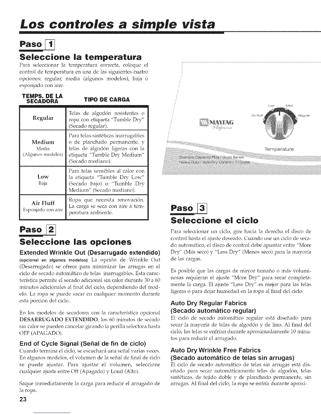 control hasta el ajuste deseado. Cuando use un ciclo de seca-