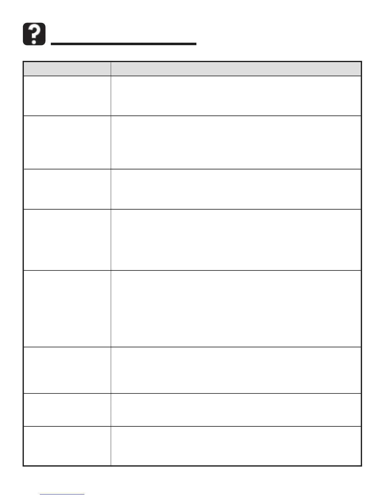 solutions possibles, à droite. • Inspecter/réarmer le disjoncteur. Inspecter/remplacer les fusibles.