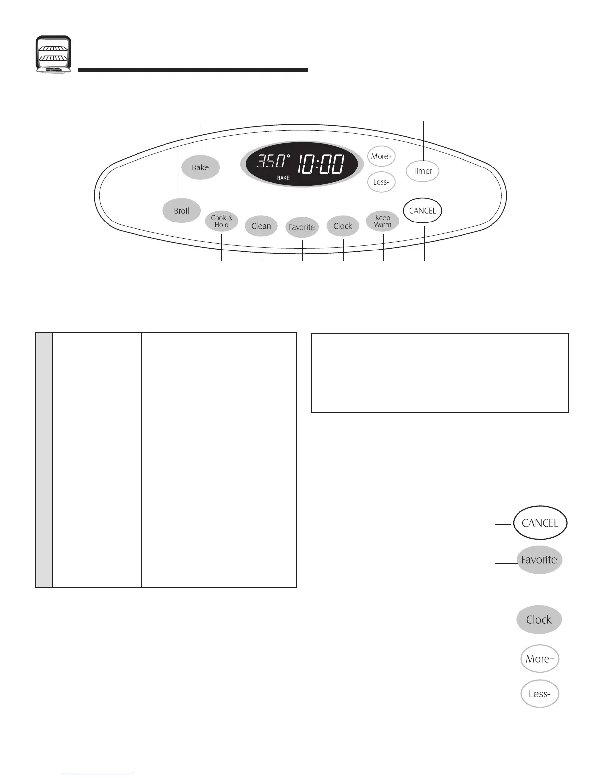 temporizador y las funciones del horno. El panel de control mostrado arriba incluye las características específicas de otros modelos.
