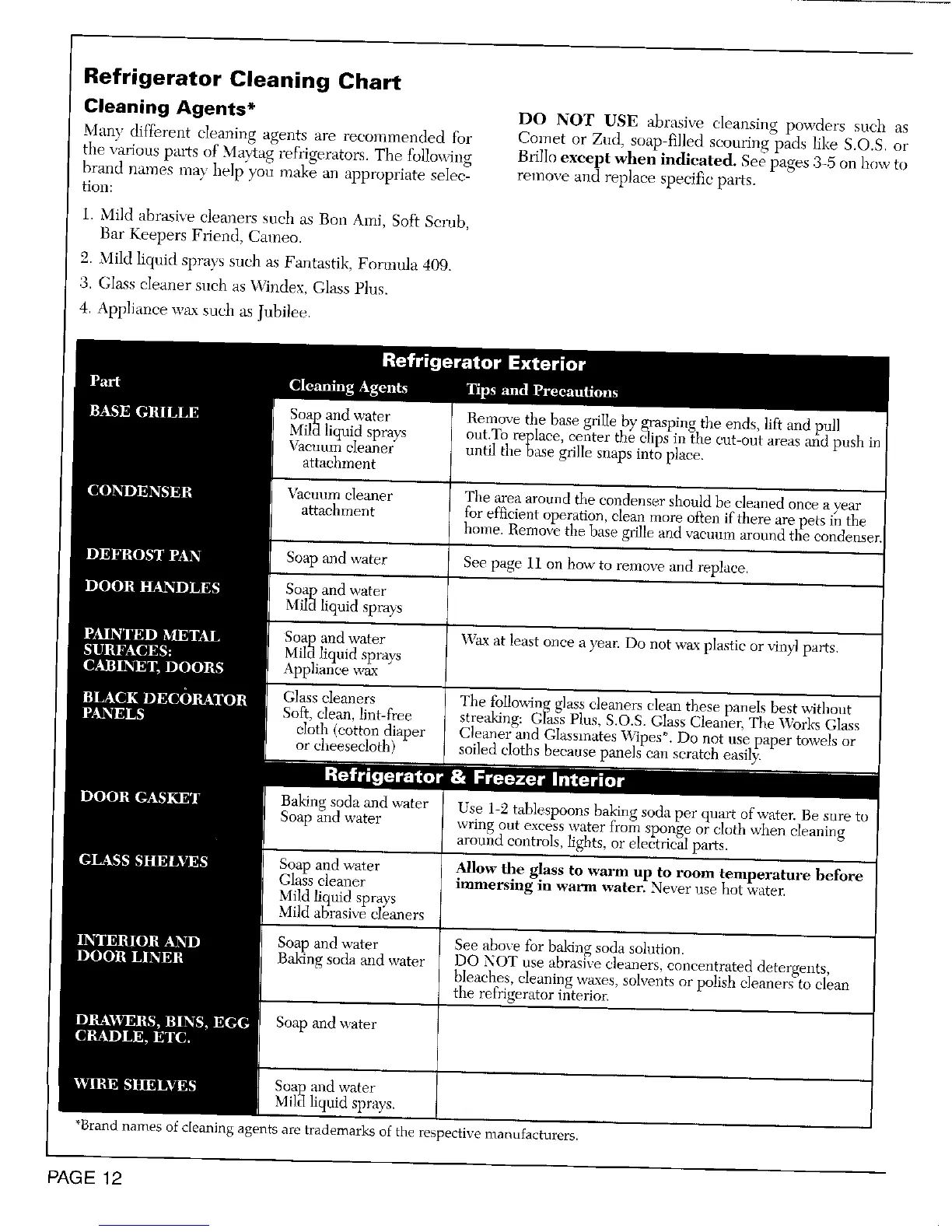 Cleaning Agents* DO NOT USE abrasive cleansing powders such as