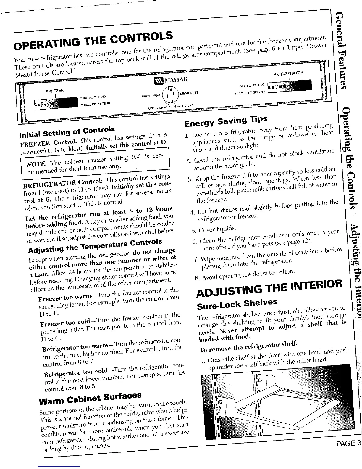 Your new"refi'igerator has two controls: one for the refrigerator compartment and one Cbrthe ffe_zer compartment.