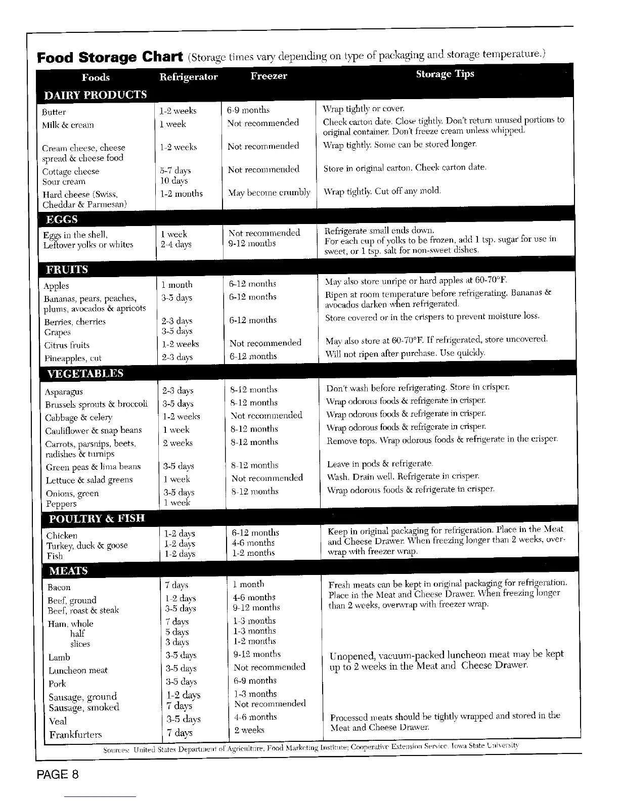 Food Storage Chart (Storage thnes val T depending on tx_oe of packaging aid storage temperature.)