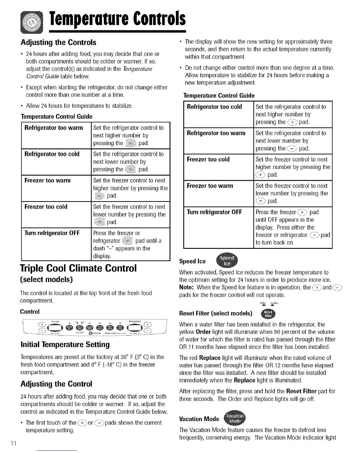 Note: When the Speed Ice feature is in operation, the _:_and _-_b