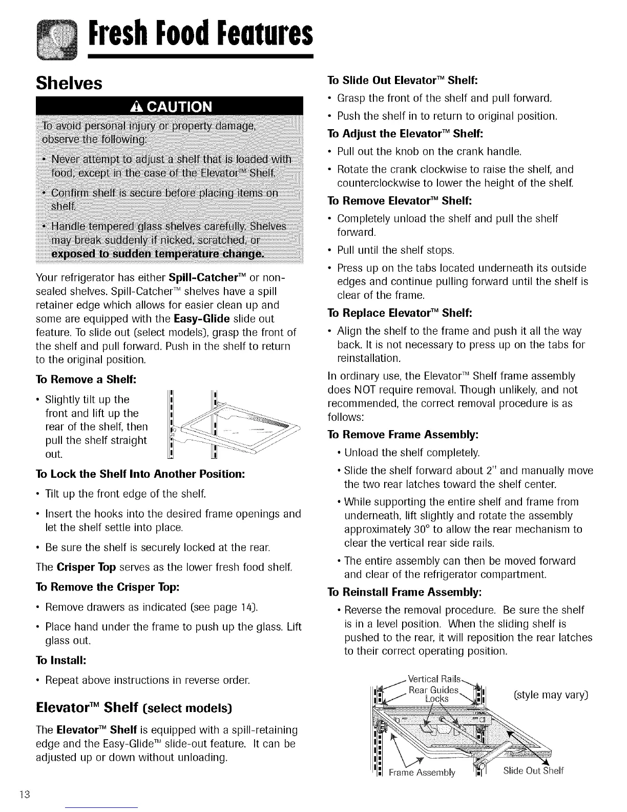 To Adjust the Elevator TM Shelf: