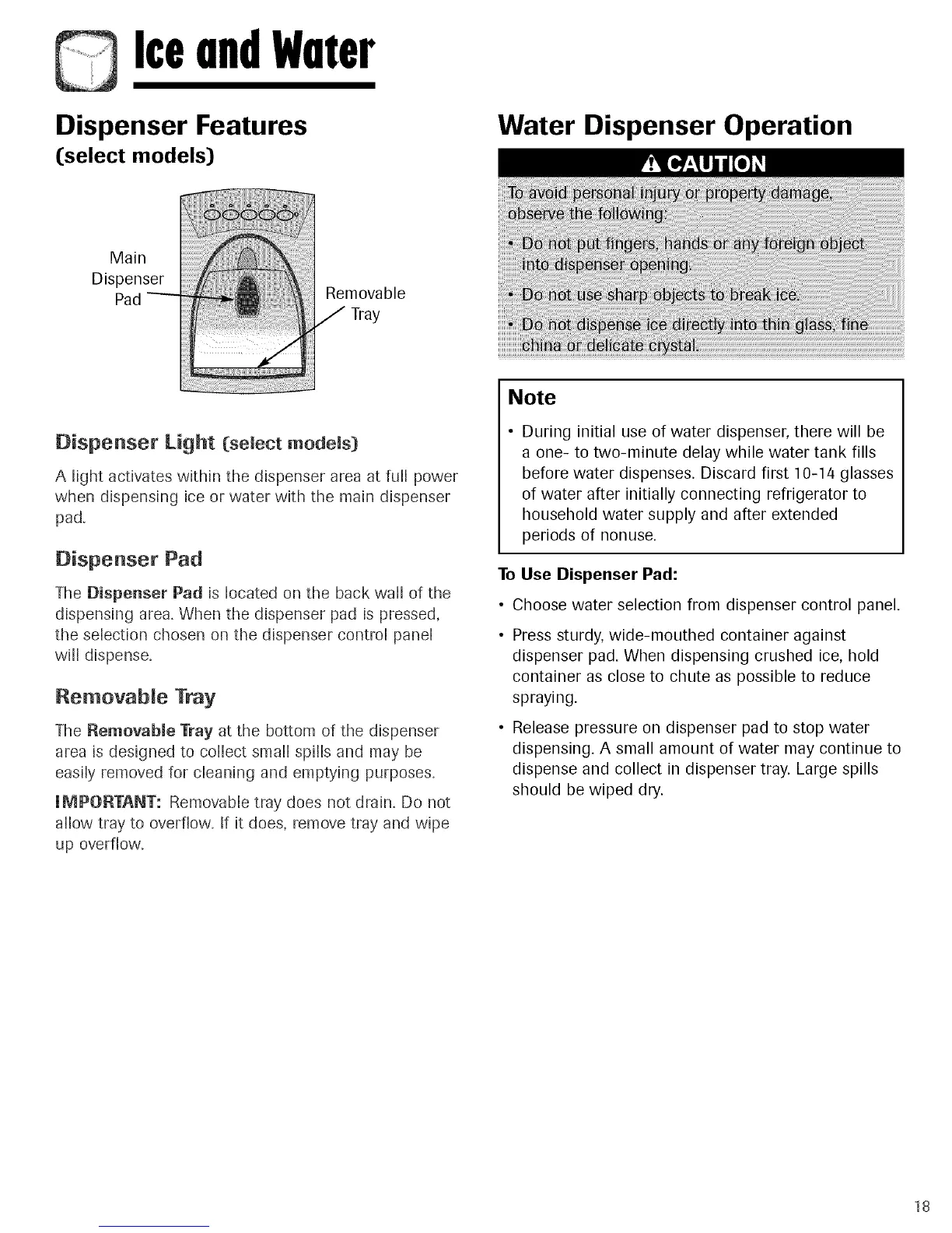 • Choose water selection from dispenser control panel.