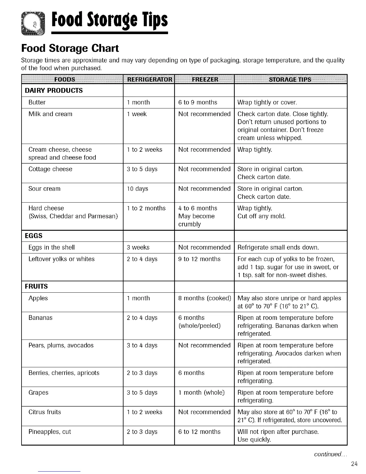 Berries, cherries, apricots 2 to 3 days 6 months Ripen at room temperature before