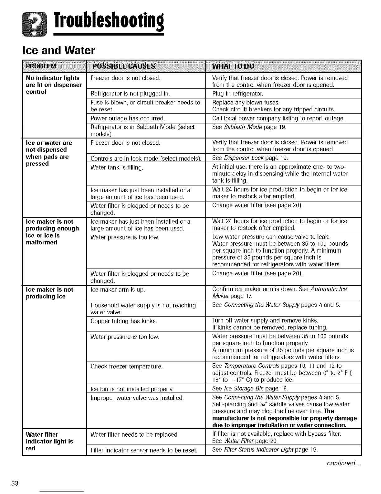 See Water Filter page 20.