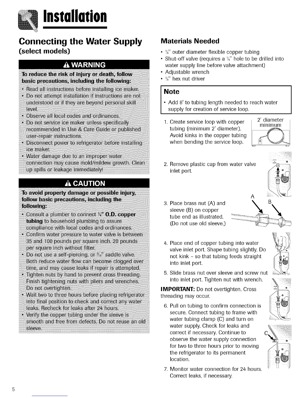 • Shut-off valve (requires a '/4" hole to be drilled into