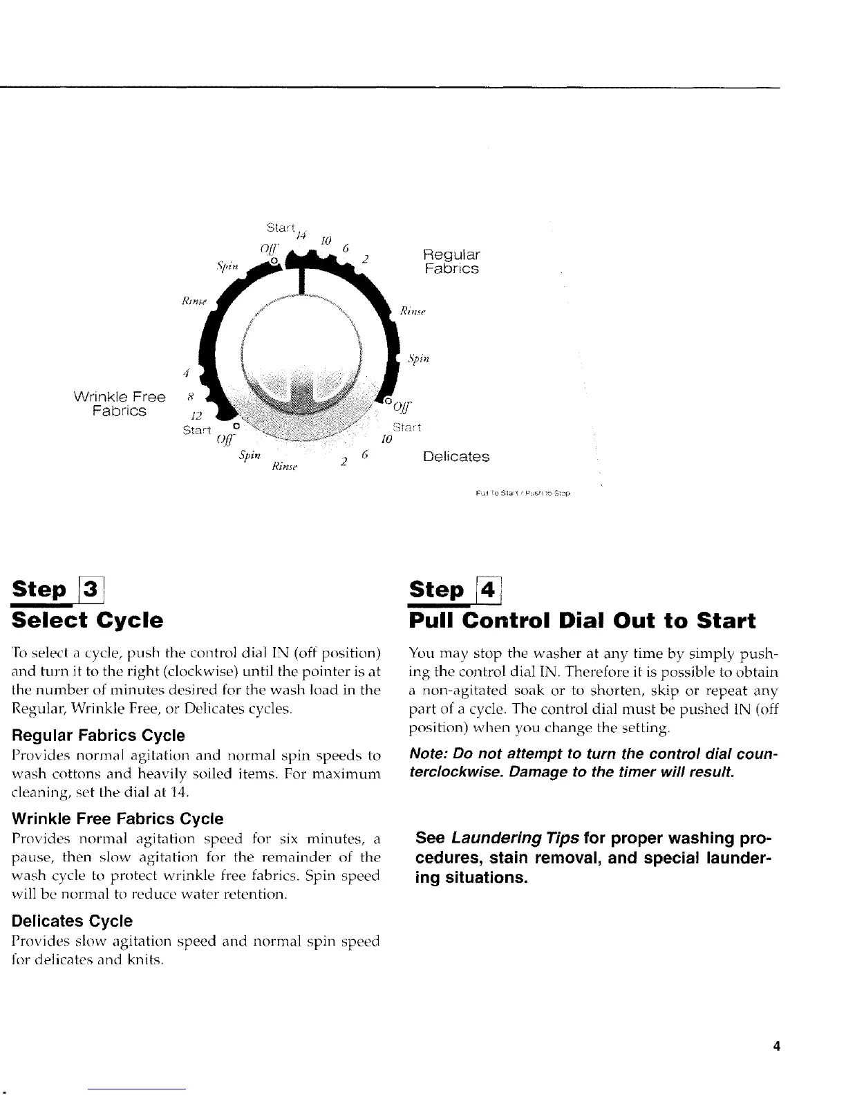 ro select a cycle, push the control dial IN (off position)