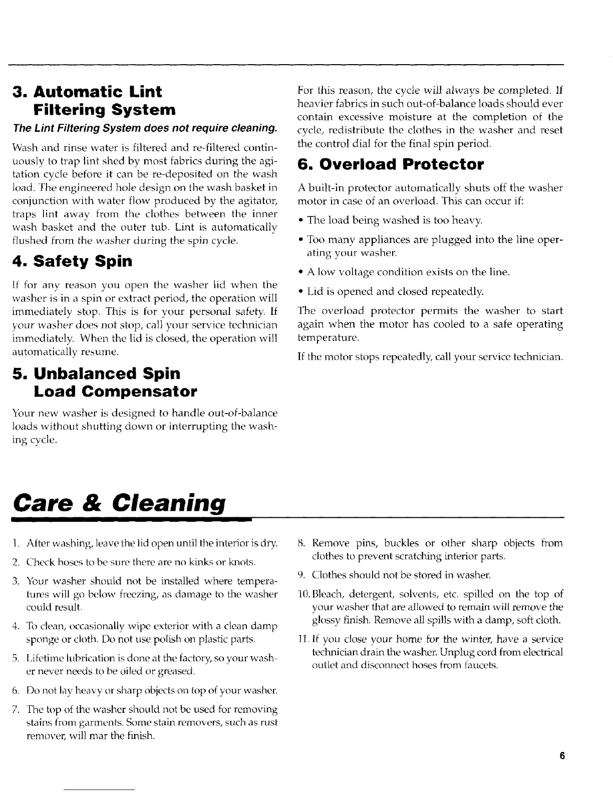 7. The top of the washer should not be used for removing