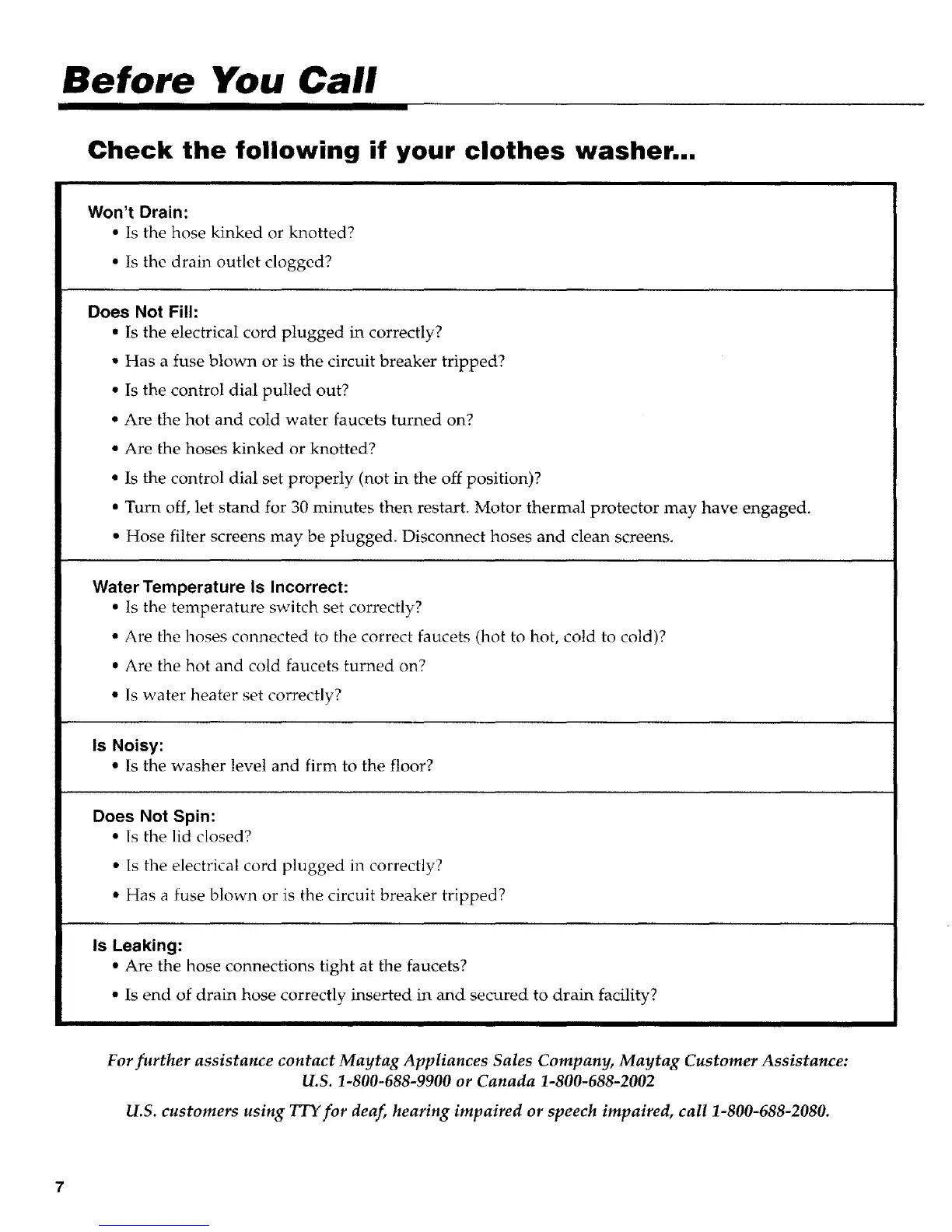 For further assistance contact Maytag Appliances Sales Company, Maytag Customer Assistance: