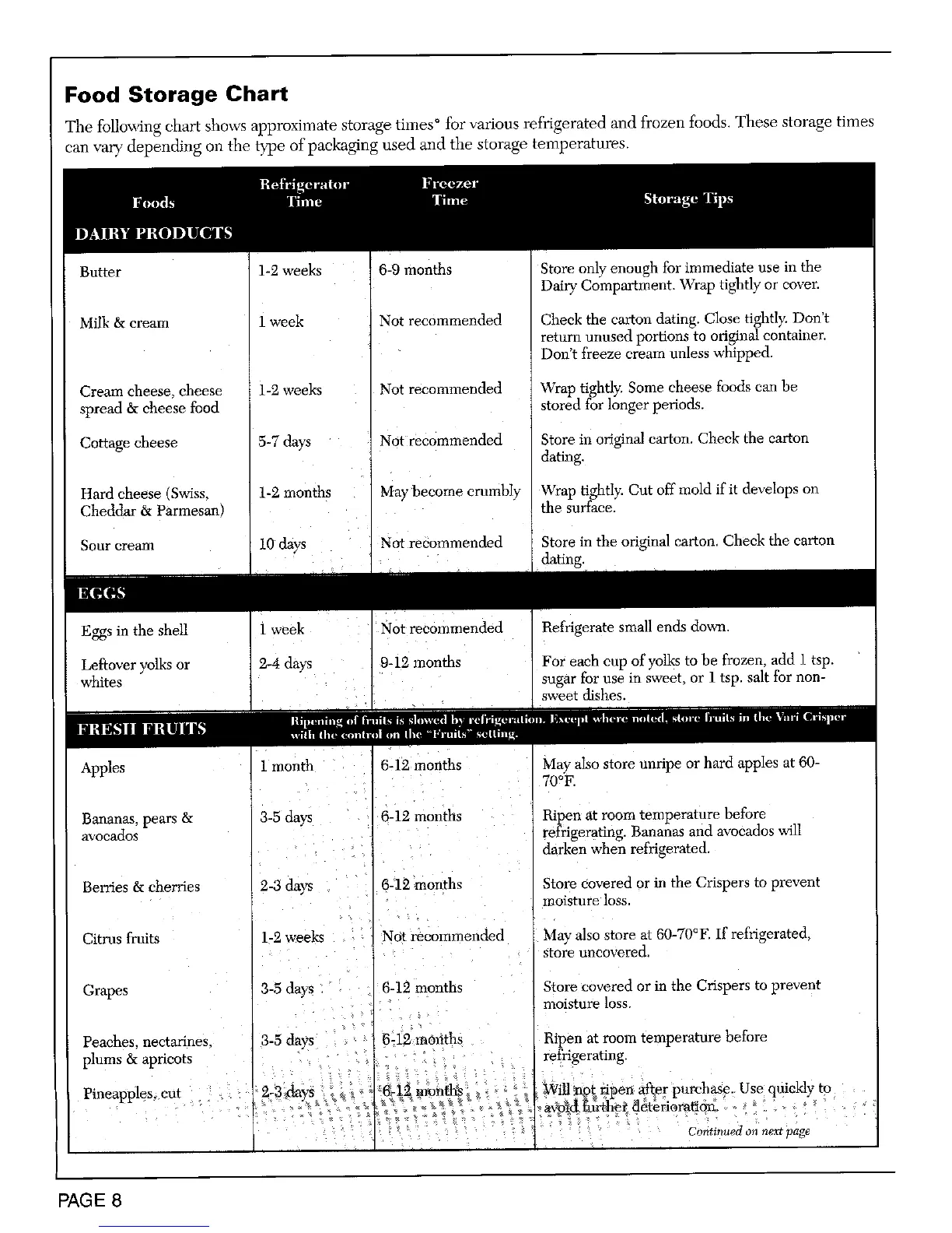 Berries & cherries 2-3 days 6-12 months Store covered or in the Crispers to prevent
