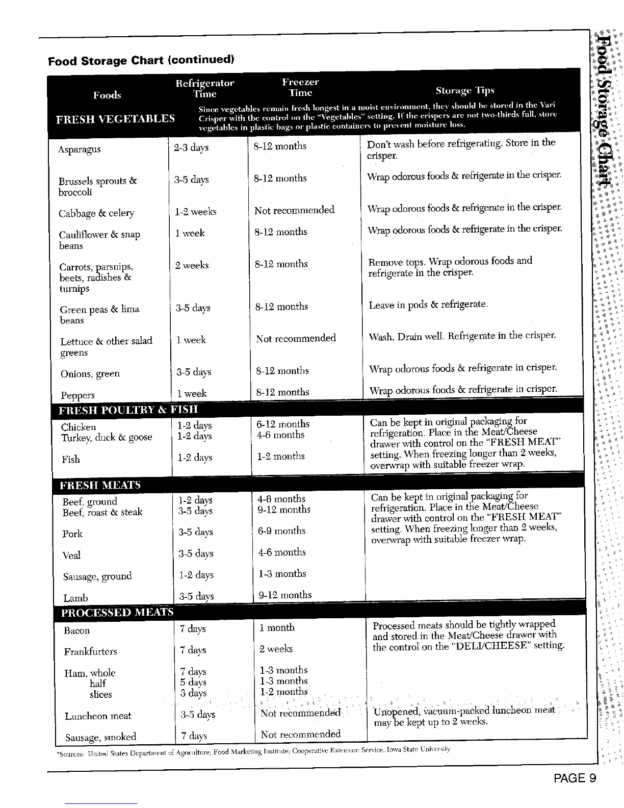 Cauliflower & snap 1week 8-12 months Wrap odorous foods & refrigerate in the crisper.