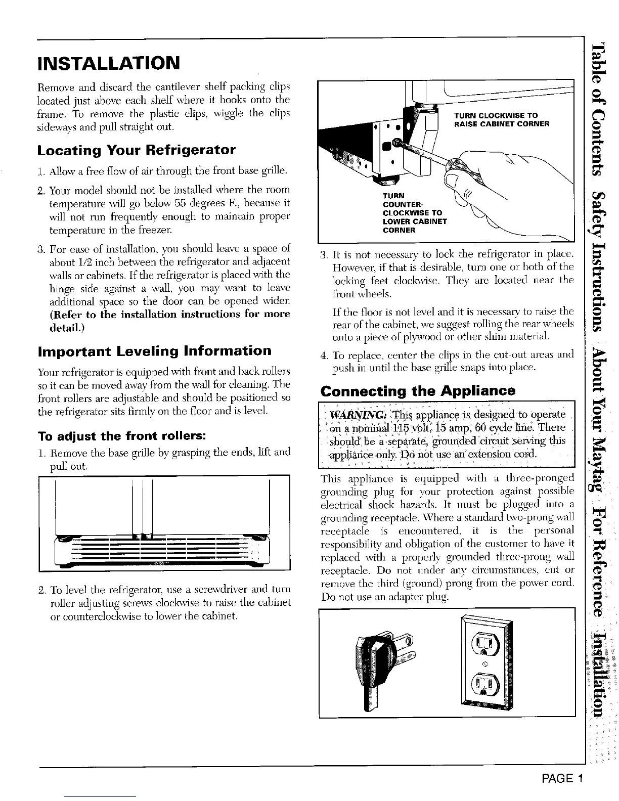 the refrigerator sits firmly on the floor aud is level. ] W_g/NG} '_tlis appliance is designed to operate