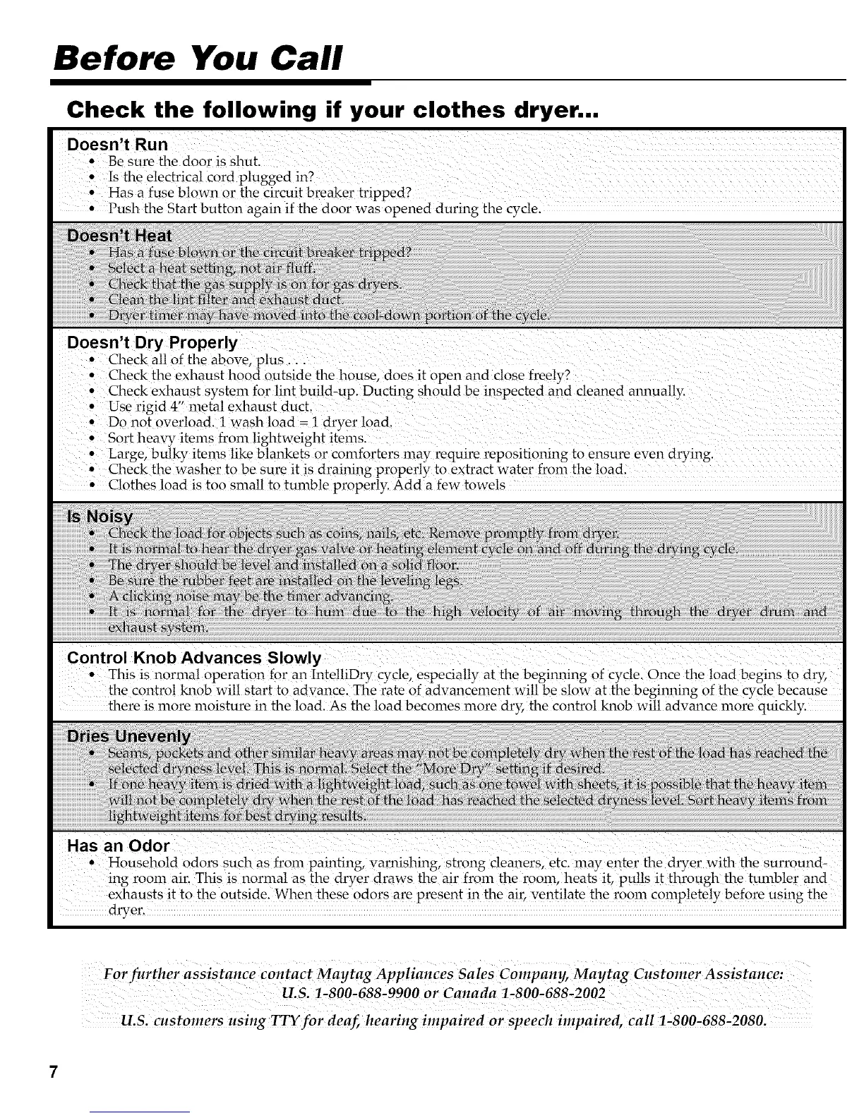 For furthe r assistance contact Maytag Appliances Sales Company, Maytag Customer Assistance: