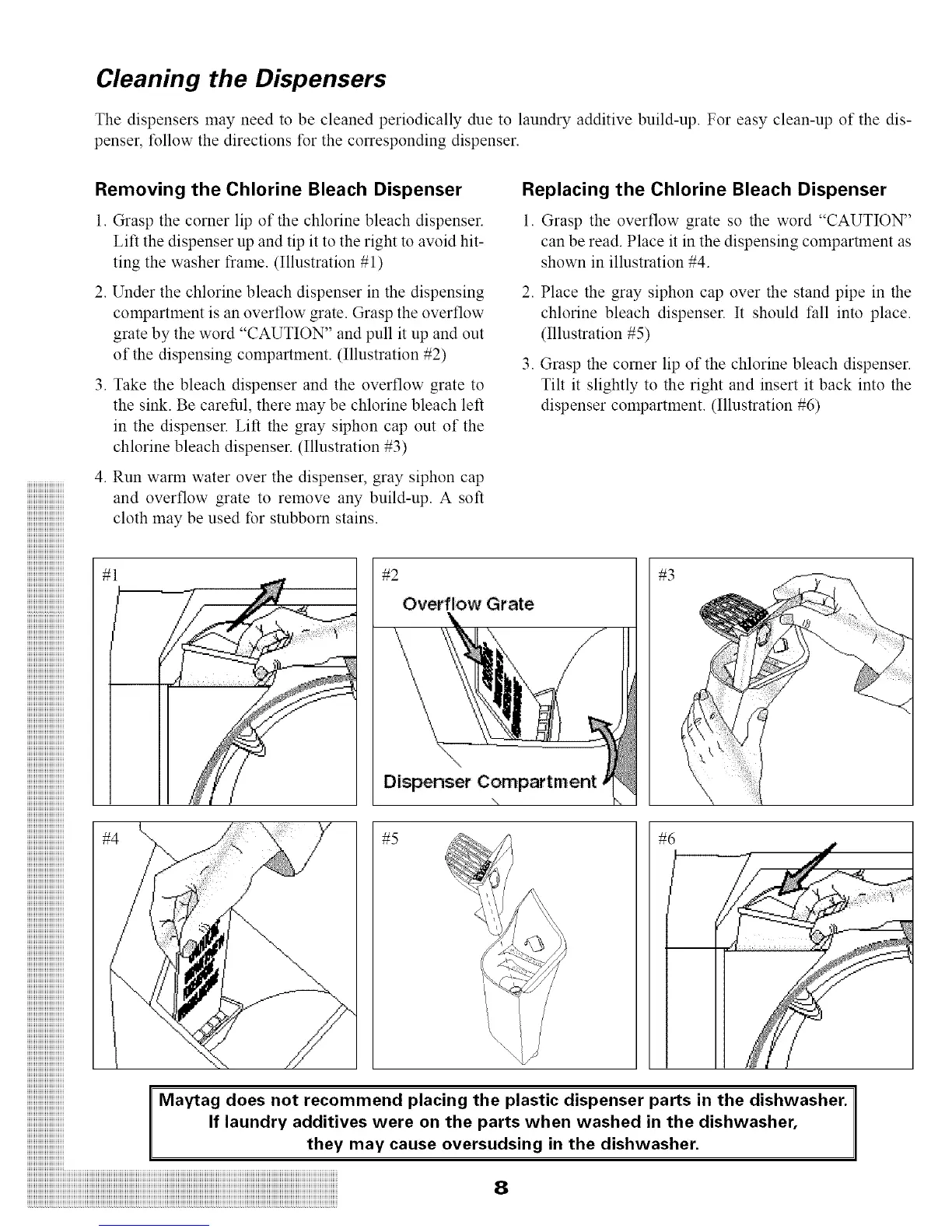 Removing the Chlorine Bleach Dispenser Replacing the Chlorine Bleach Dispenser