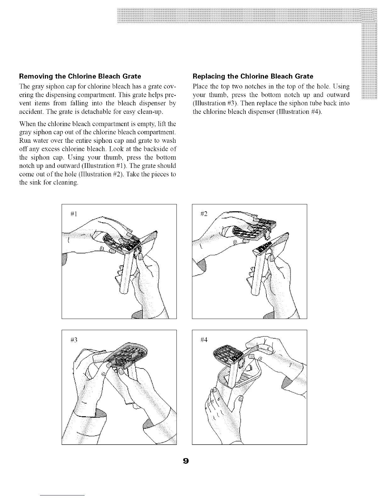 gray siphon cap out of the chlorine bleach compartment.
