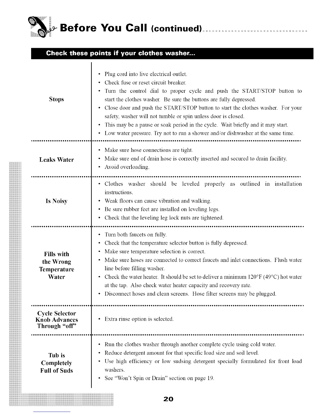 Water • Check the water heater. It should be set to deliver a minimum 120°F (49°C) hot water