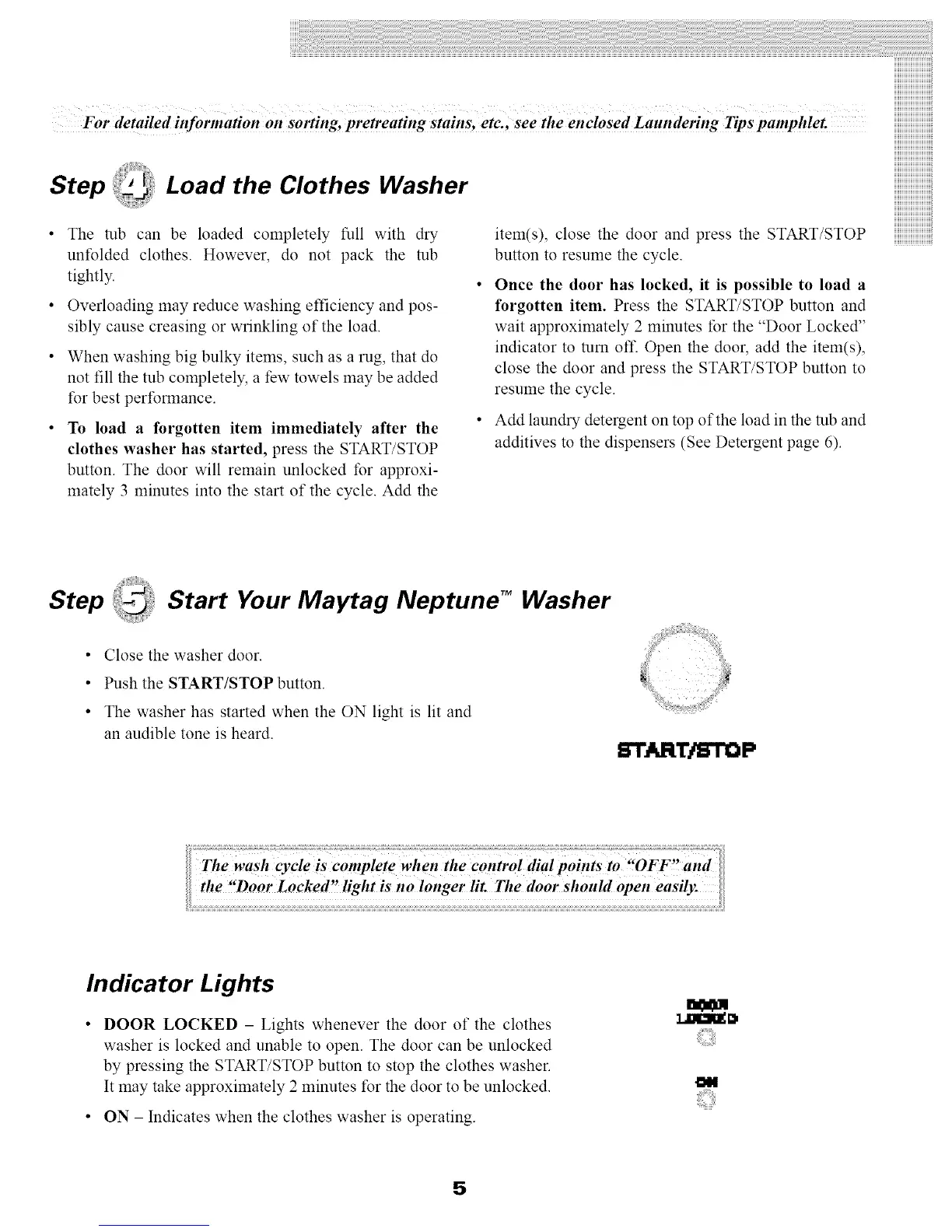 Step Start Your Maytag Neptune TM Washer