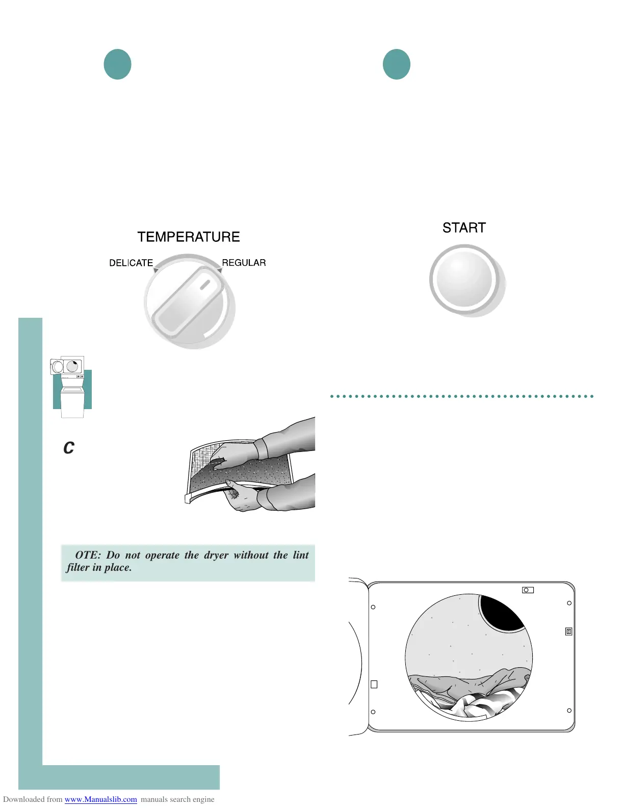 Push this button to start the dryer. The dryer door
