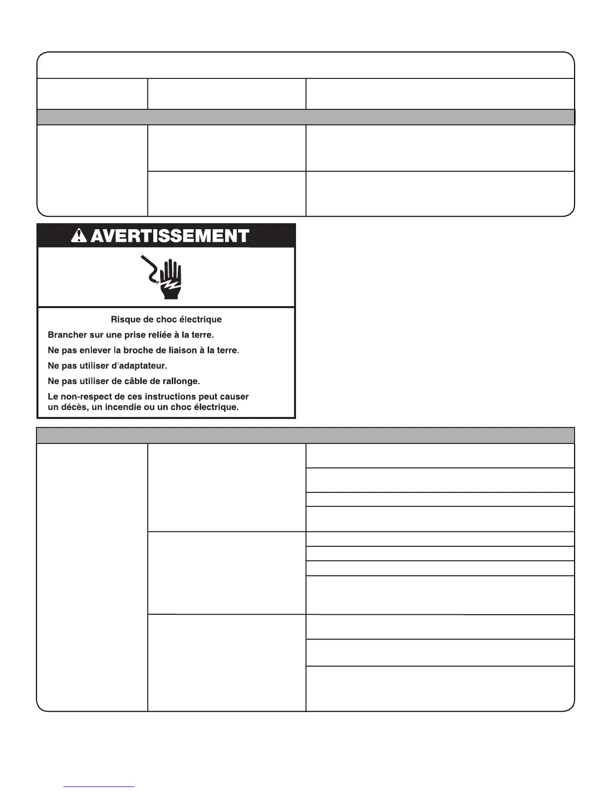 REMARQUE : Si le problème persiste, appeler un électricien.