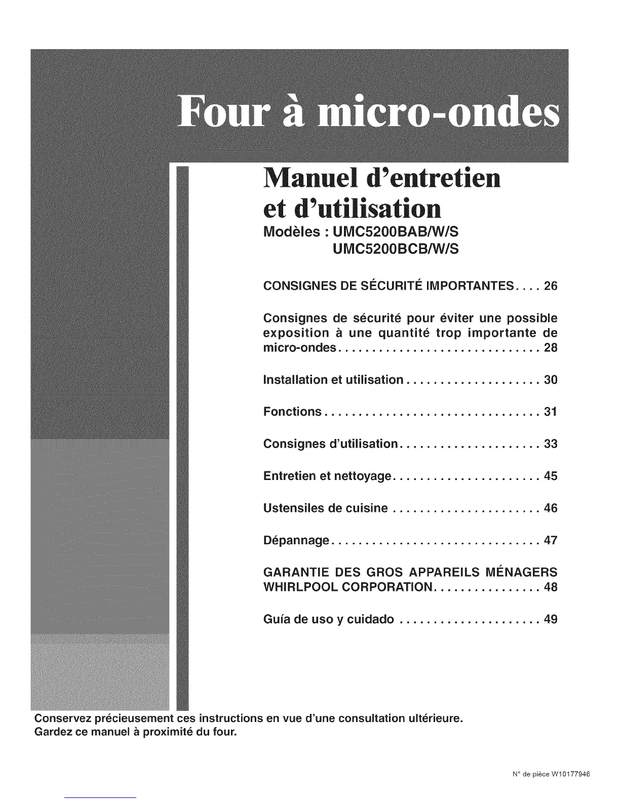 CONSIGNES DE St_CURITf_ llVIPORTANTES .... 26
