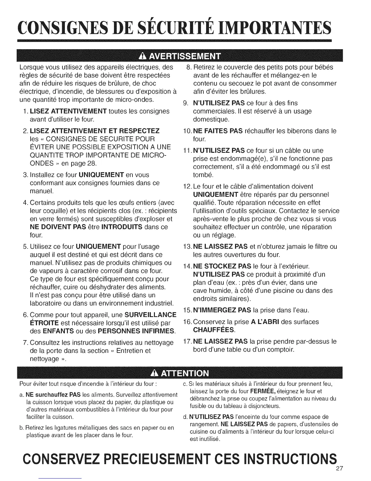 7. Consultez les instructions relatives au nettoyage 17. NE LAISSEZ PAS la prise pendre par-dessus le