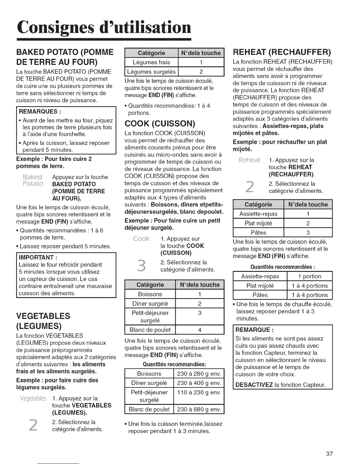 cuisson ni niveau de puissance.