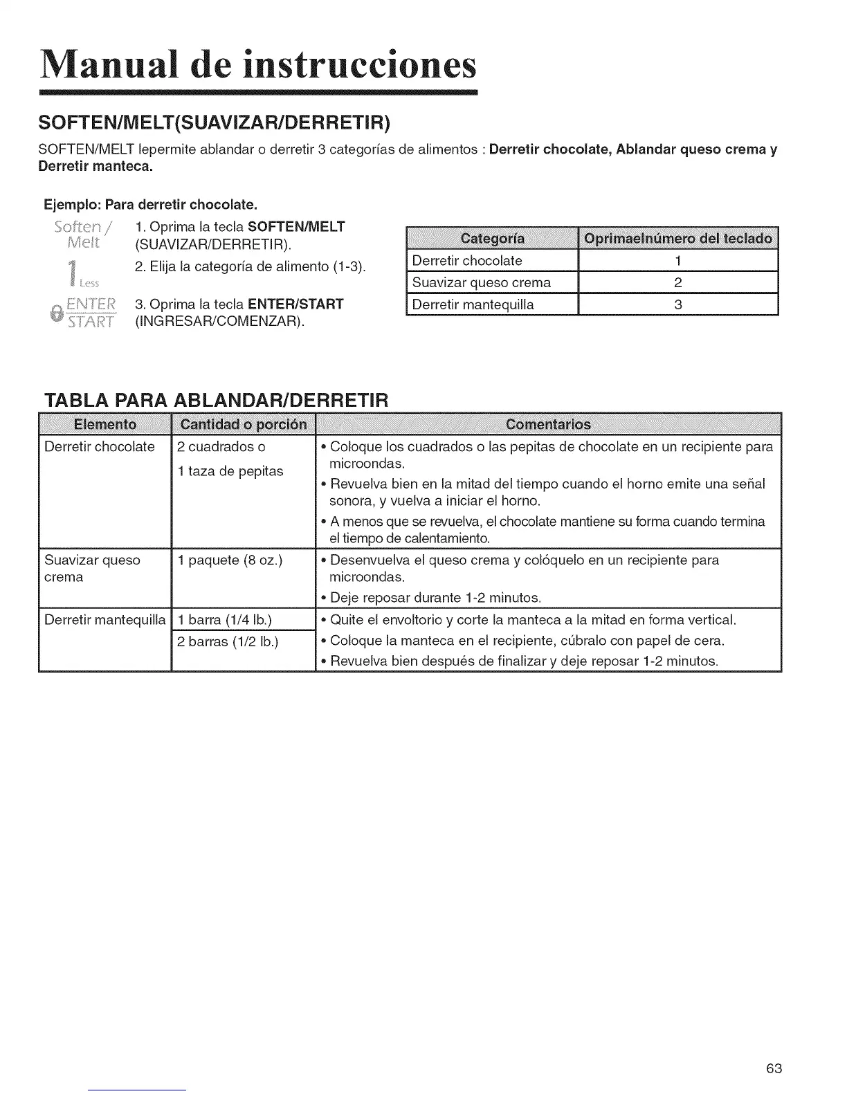 SOFTEN/MELT lepermite abiandar o derrefir 3 categorias de alimentos " Derretir chocolate, Abiandar queso crema y