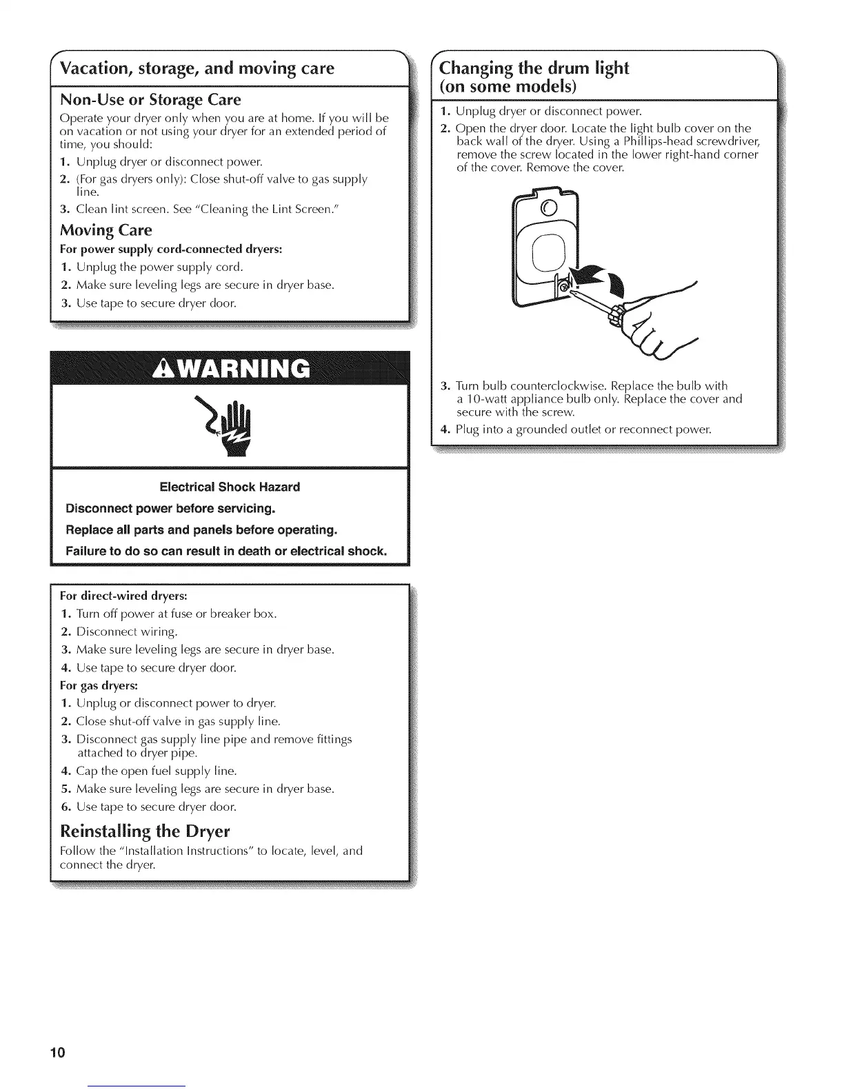 2. (For gas dryers only): Close shut-off valve to gas supply