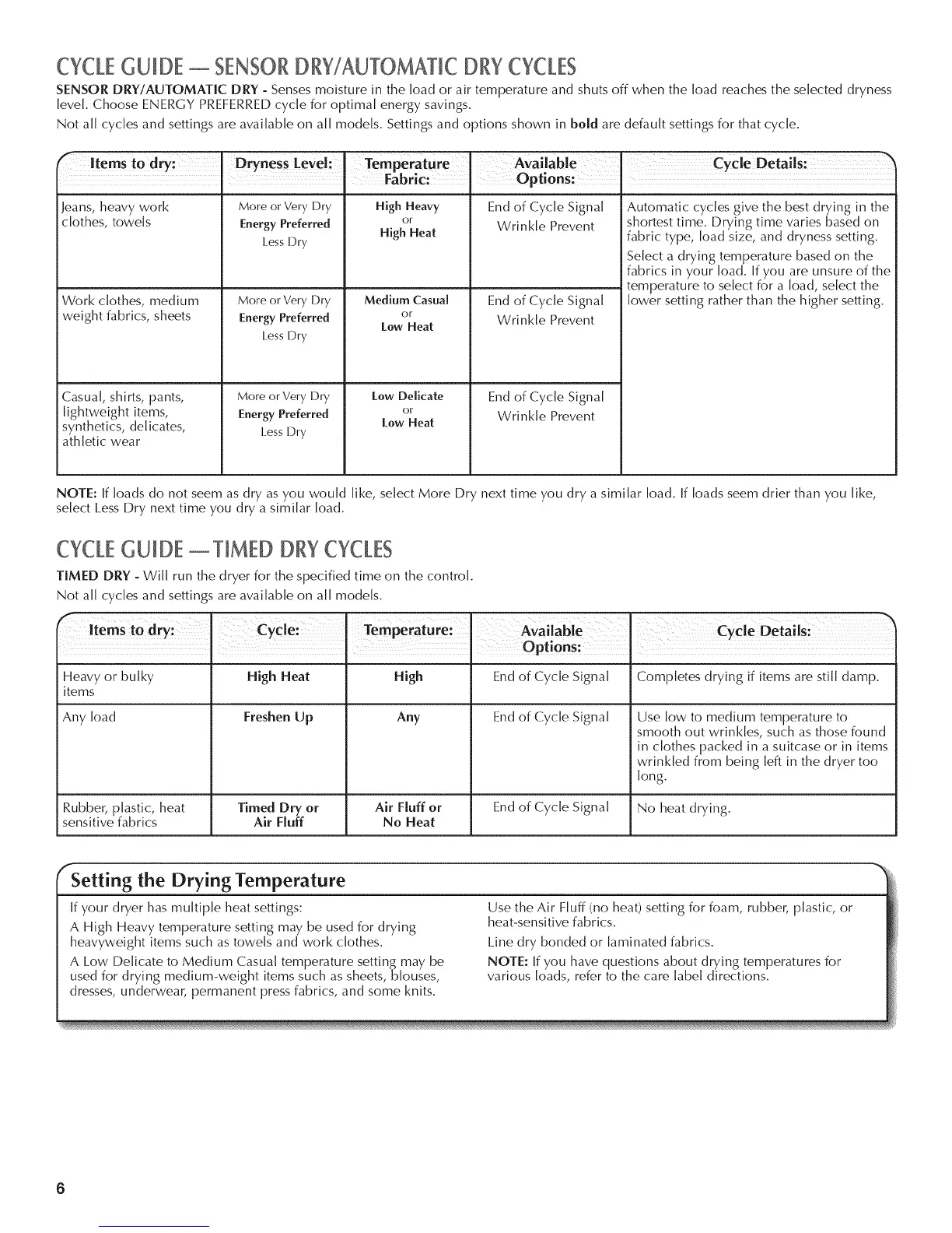 CYCLEGUIDE -- SENSORDRY/AUTOMATiCDRYCYCLES