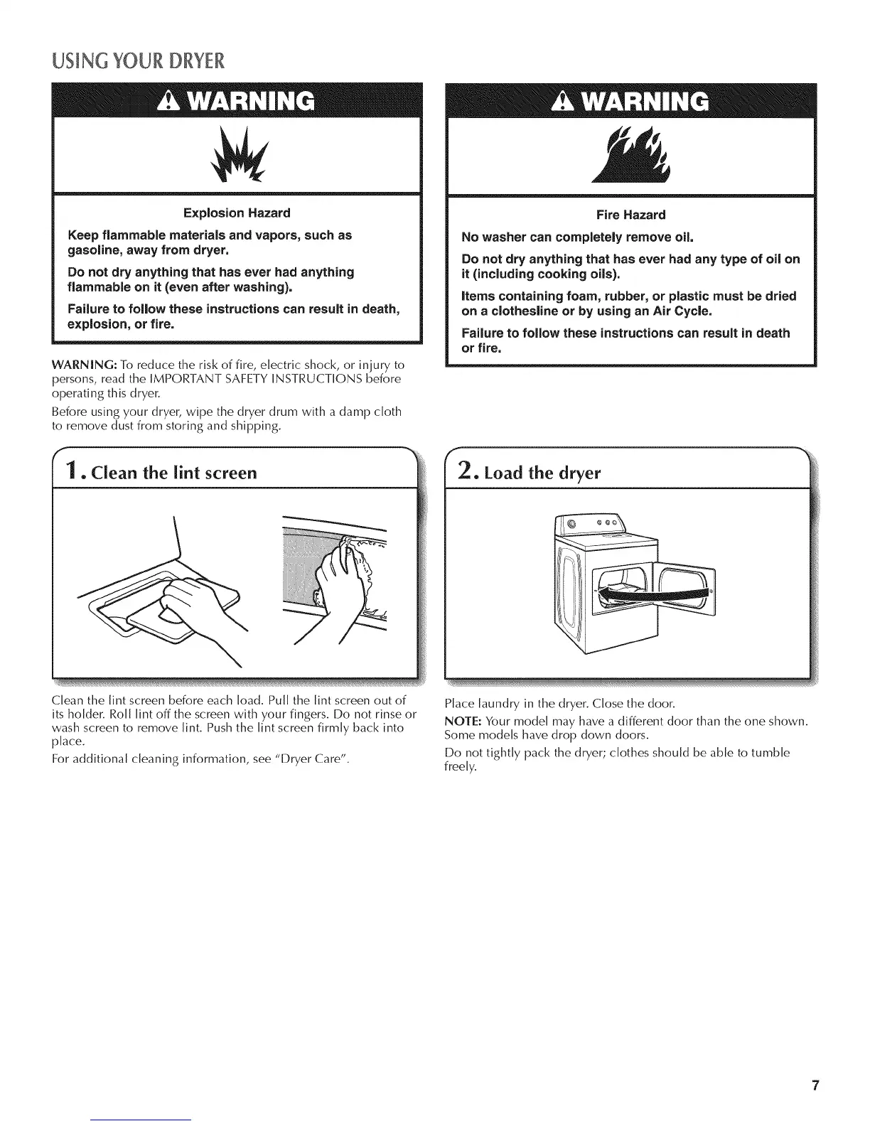 Before using your dryer, wipe the dryer drum with a damp cloth