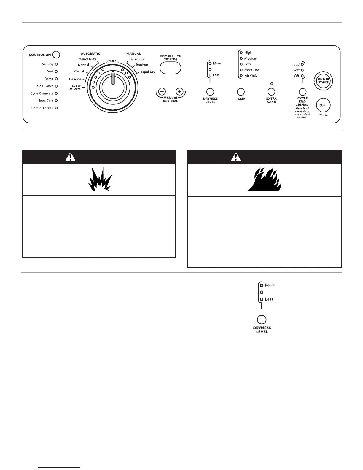 ■ Press and hold HOLD TO START button until dryer starts