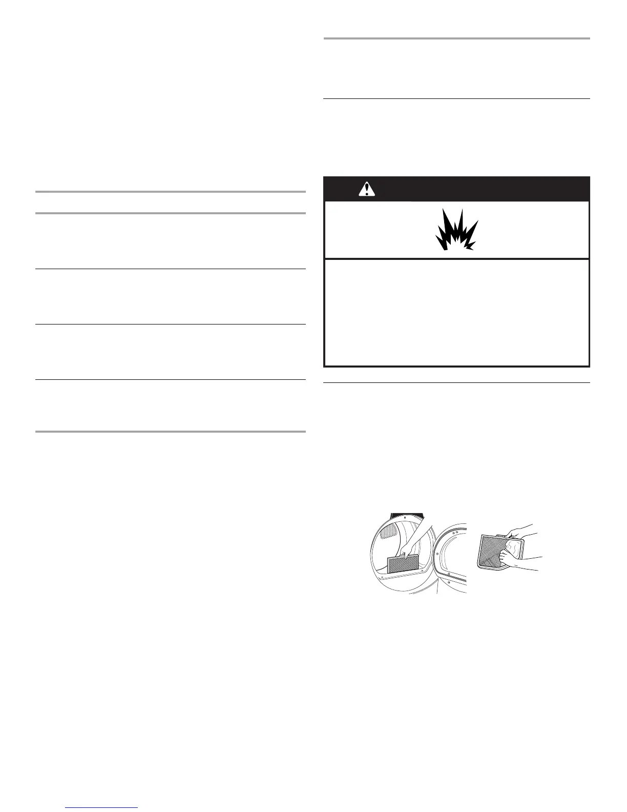 ■ Ne pas faire fonctionner la sécheuse avec un filtre à charpie
