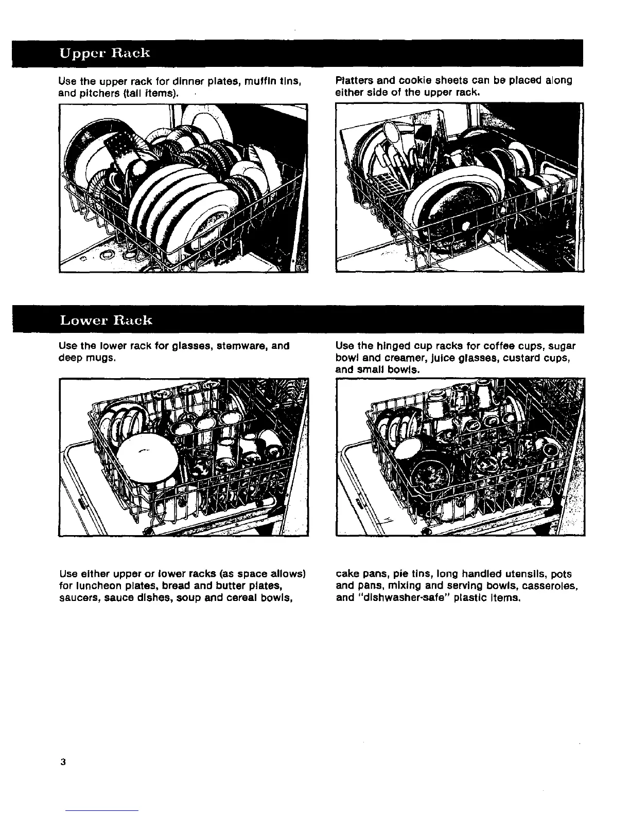 Usethe upperrackfor dinnerplates,muffintins,