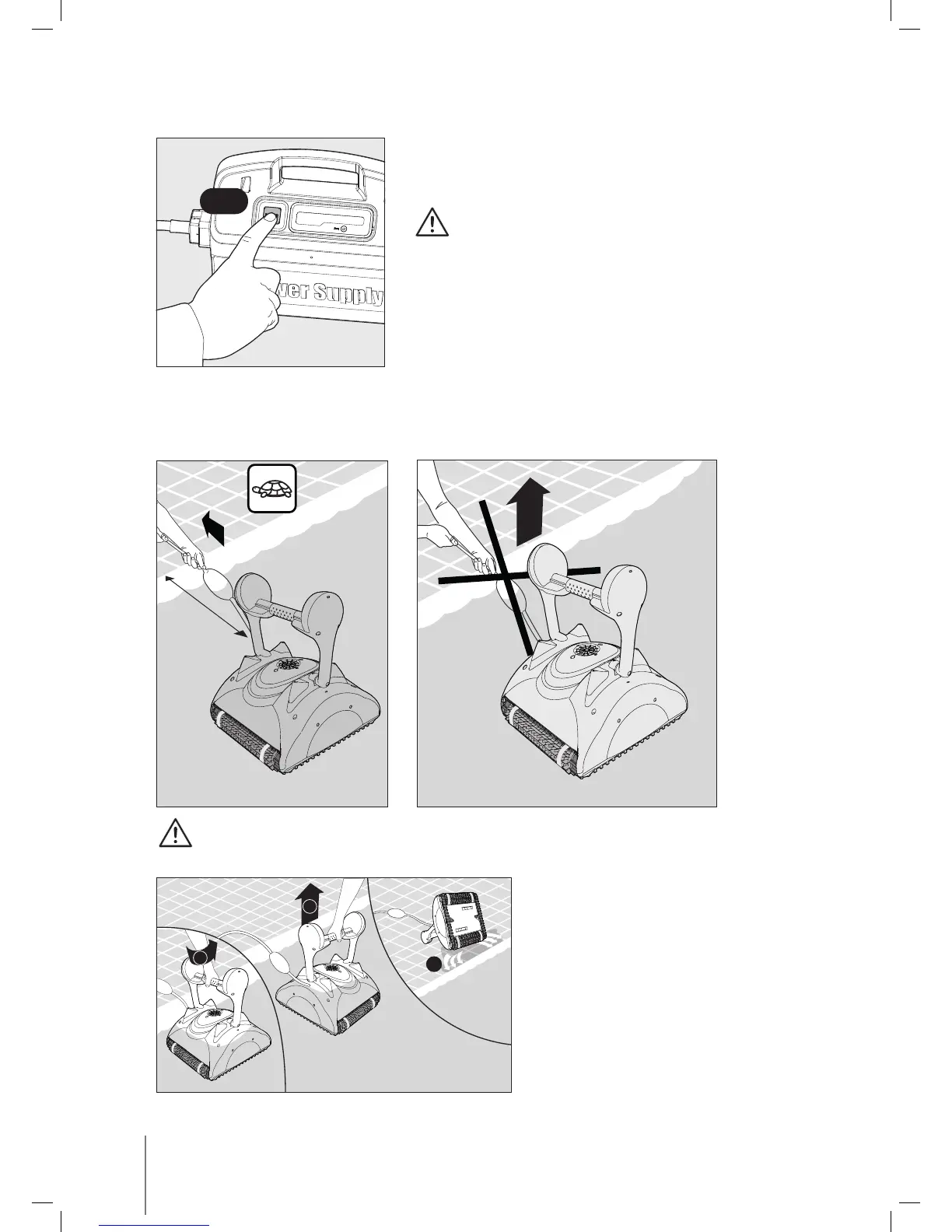 Utilizando o cabo flutuante, traga o aspirador até à borda da piscina.