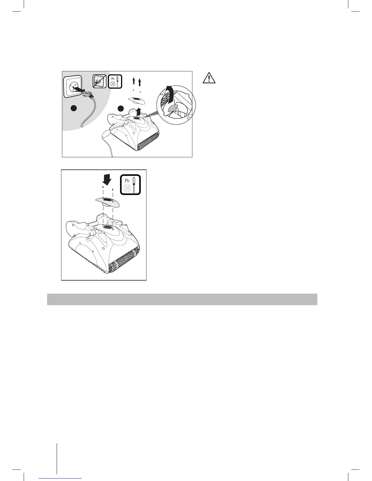 • Desligue o limpador de piscinas da rede elétrica