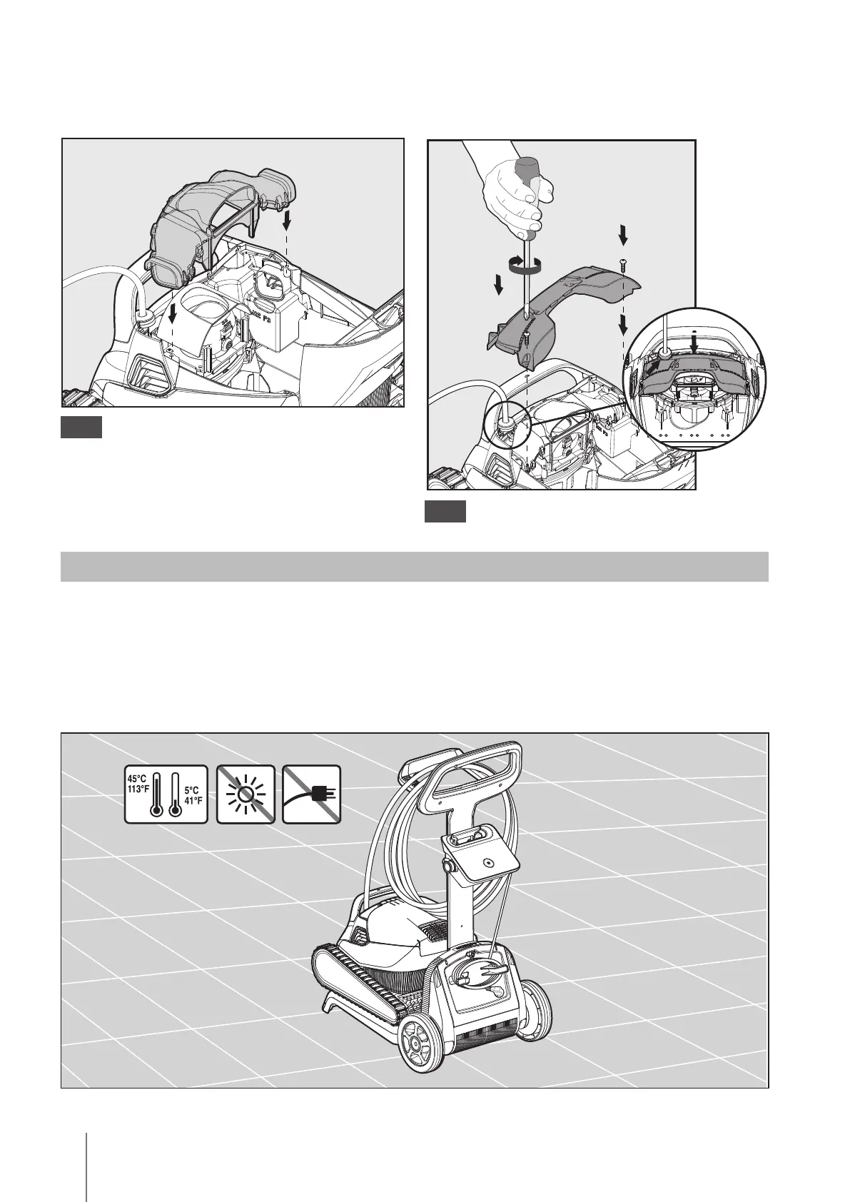 • Store the Pool Cleaner in a protected area out of direct sun / rain / frost, at a temperature
